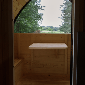 • priepirtyje pusiau panoraminis langas, atlenkiamas stalas, atidaromi šoniniai gultai